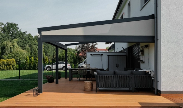 Die Sunshadow FlexPergola ist die moderne, maßgefertigte Faltpergola aus Aluminium für Terrasse und Garten. Sie kombiniert elegantes Design mit höchster Stabilität und zuverlässigem Wetterschutz.