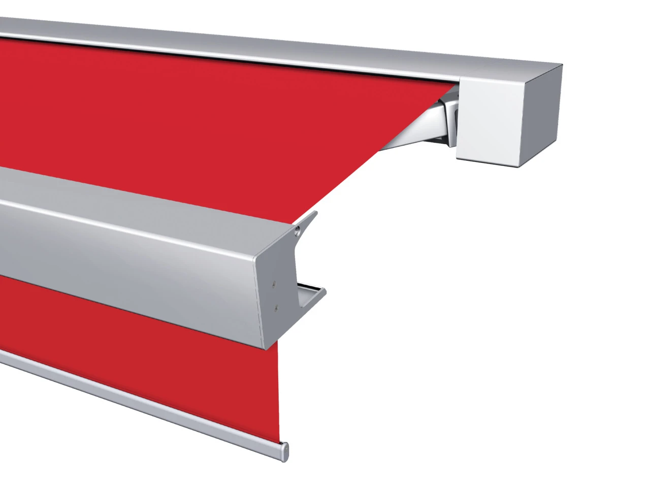 • kaum sichtbar am Ausfallprofil der Markise montiert