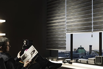 Abwechselnd blickdicht und transparent gewebte Stoffe ermöglichen eine stufenlose Lichtregulierung mit angenehm sanftem Raumlicht.