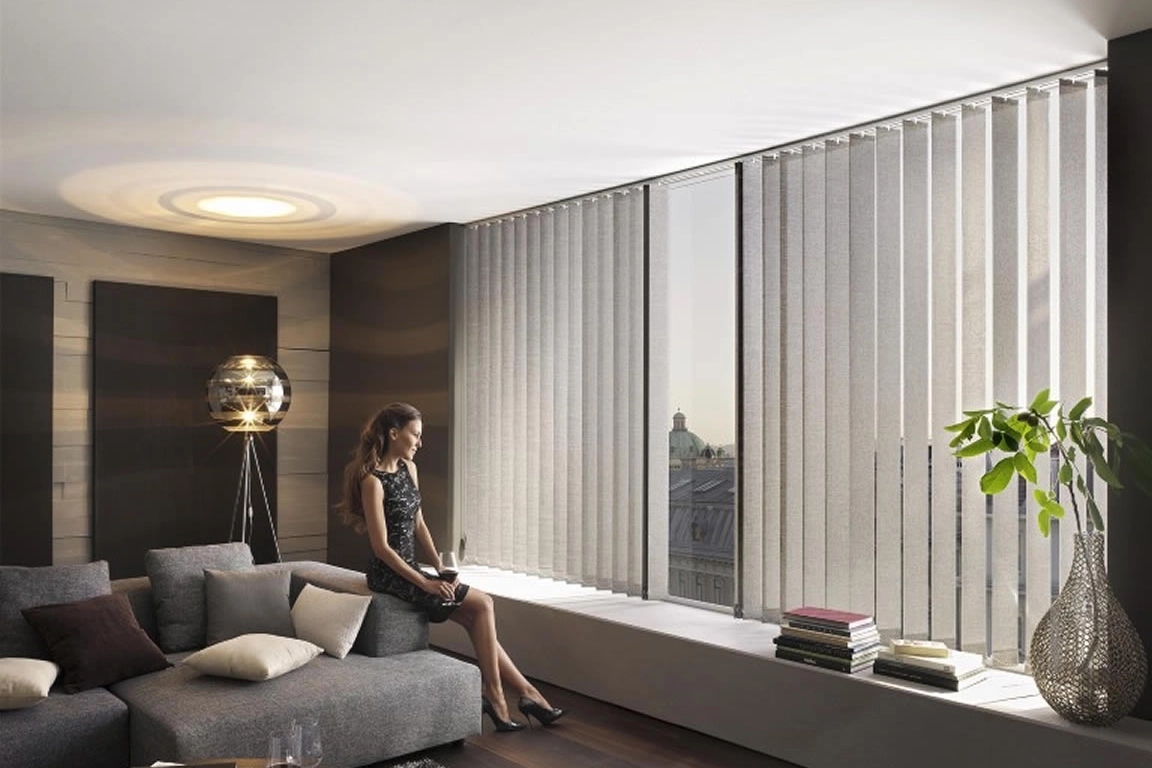 Wie ein Raum an Raum gewinnt? Durch die Betonung der Vertikale. Diesem einfachen Gesetz folgt die Vertikaljalousie und schafft durch ihre großzügigen Lamellen ein Gefühl der Grenzenlosigkeit.